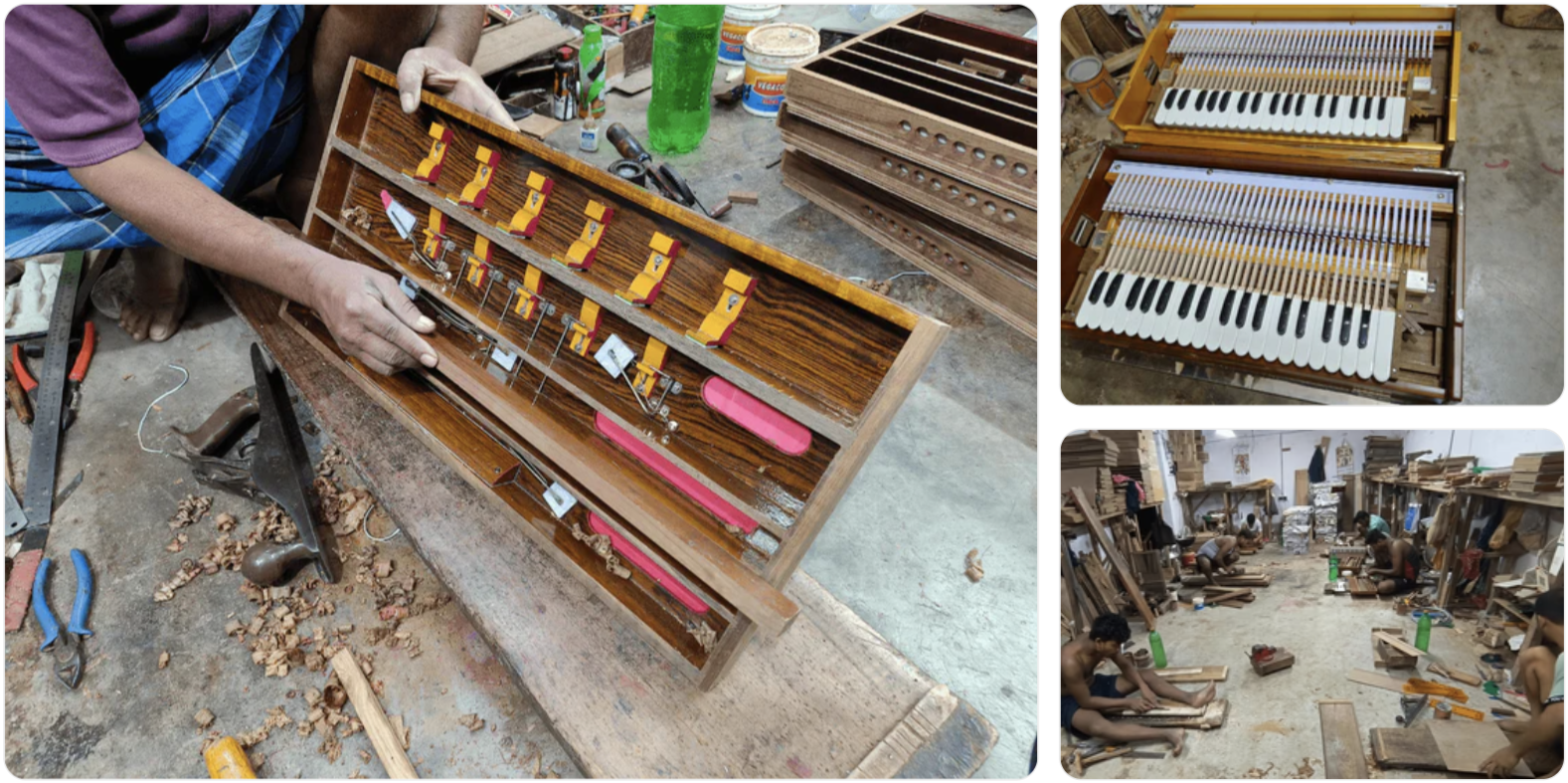 As an in-house manufacturer in Kolkata, we can craft harmoniums according to your needs(Custom Harmoniums). As an M2C Brand(Manufacturer to Customer), We deliver quality at affordable prices while maintaining high pay wages for our craftsmen (who are like our family).